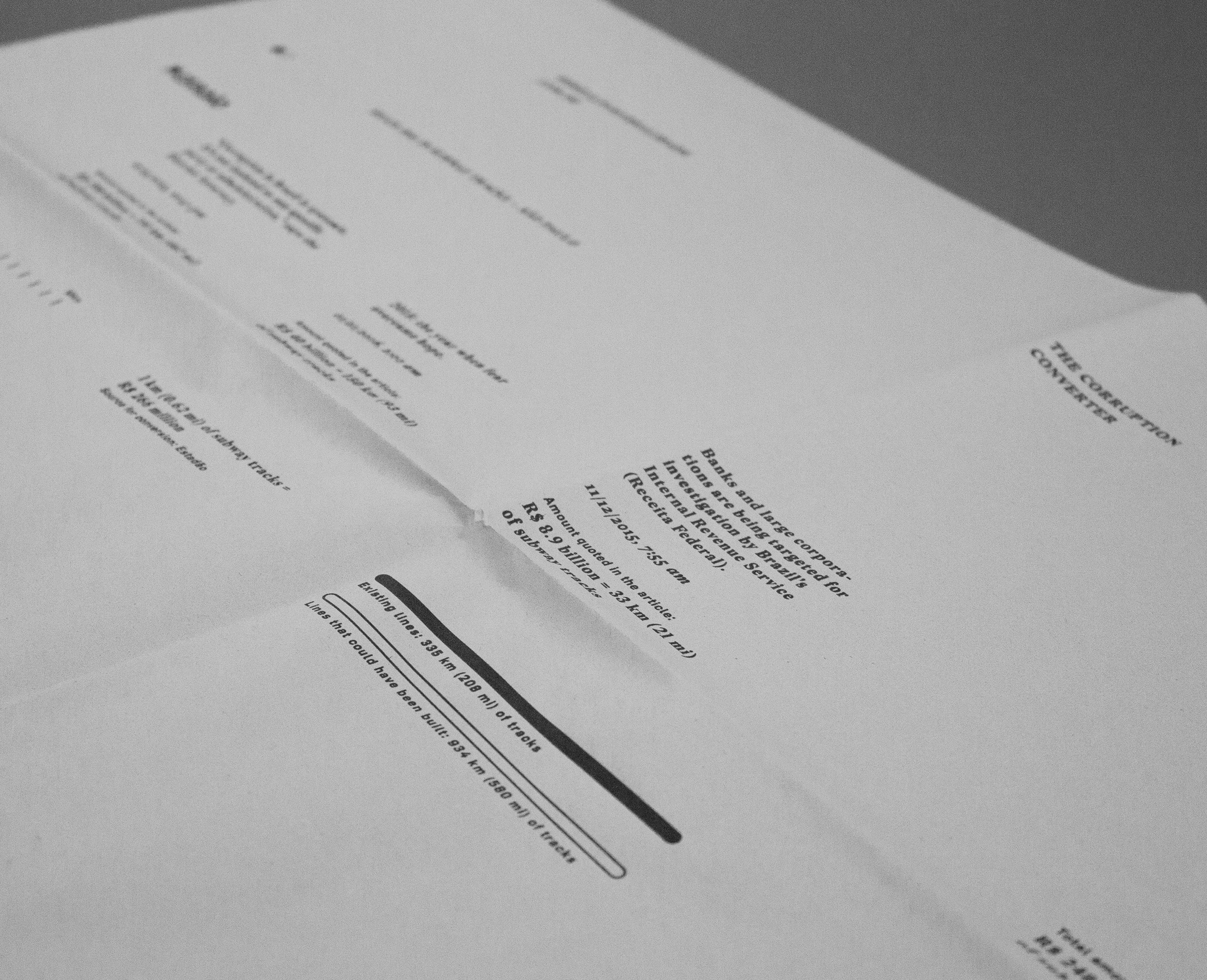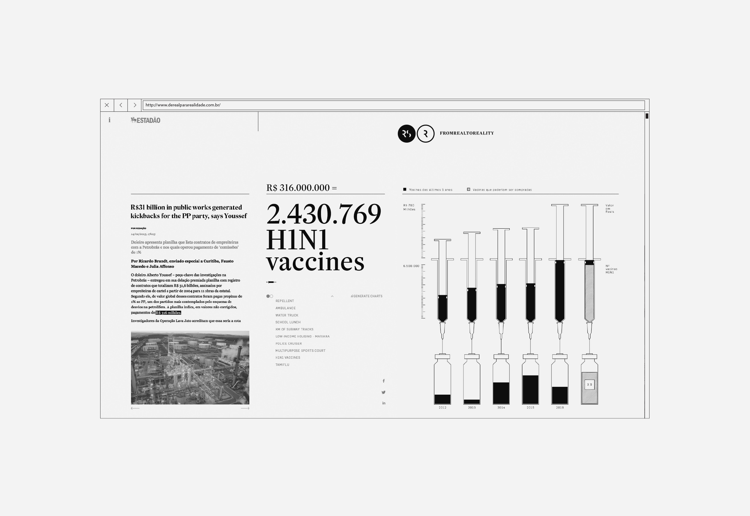 We created a tool for the Estadao Newspaper’s portal, which allows users to convert the amounts in question into deficient products and services provided by the public sector, juxtaposing the news about money that goes missing with the news about where money is needed.